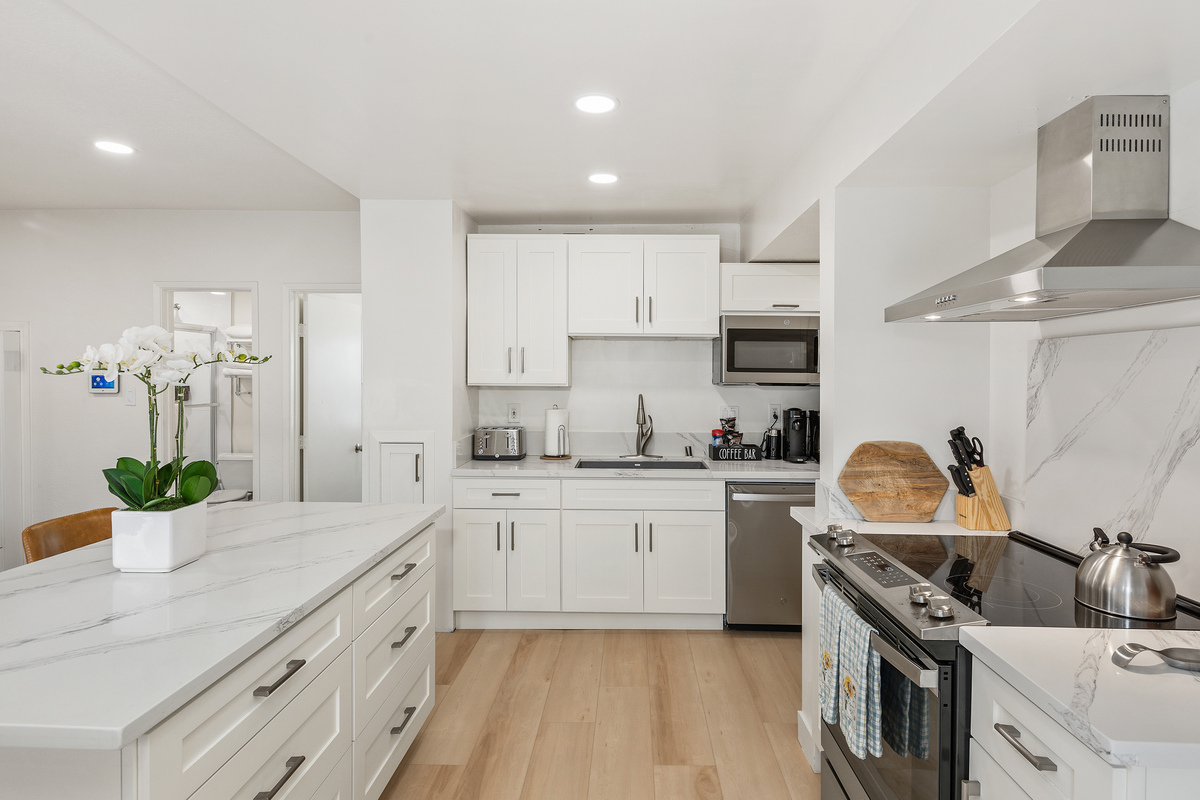 After a day of adventure, return to the comfort of our Pacific Beach cottage and sink into the brand new plush beds.